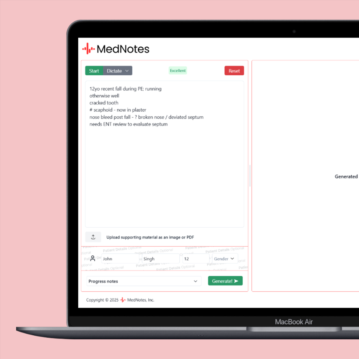 MedNotes is an AI-driven medical assistant that creates clinical notes, provides health insights, and supports secure medical documentation.