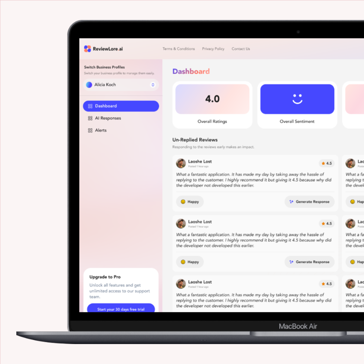 ReviewLore is an AI-powered platform that helps businesses manage, analyze, and respond to Google reviews using smart automation.